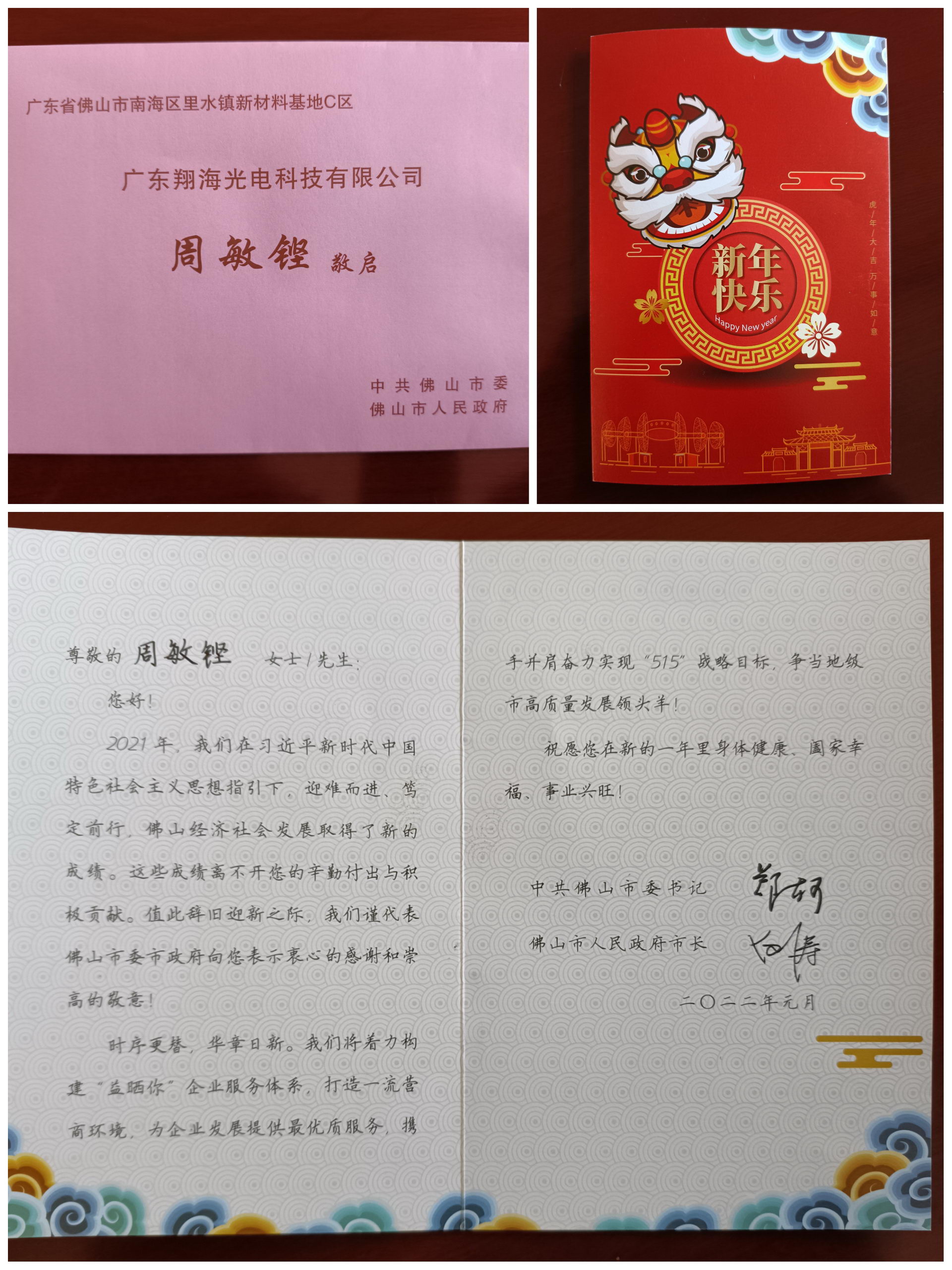 值此辞旧迎新之际,广东乐动官方端网页版乐动(中国)有限公司收到了来自佛山市委、市政府的新年贺卡,深切感受到了党和政府对企业的关心与祝福,倍感温暖、备受鼓舞。